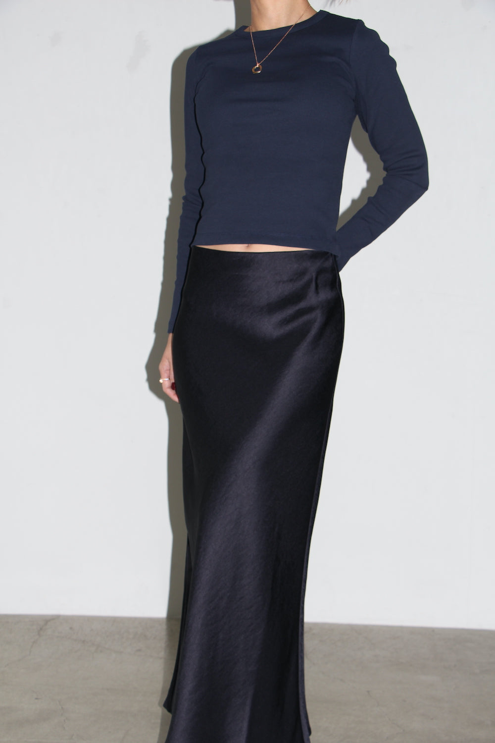REiL BIAS CUT SATIN SKIRT / NAVY